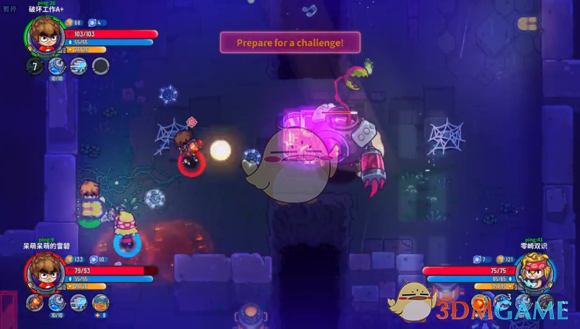 如果房间四角有叭叭啦的话优先打掉叭叭啦,否则不小心踩到混乱是很难受的,打boss的节奏一般是打两下后调整位置,boss跳跃攻击时会有范围提示,及时走出红圈就行。