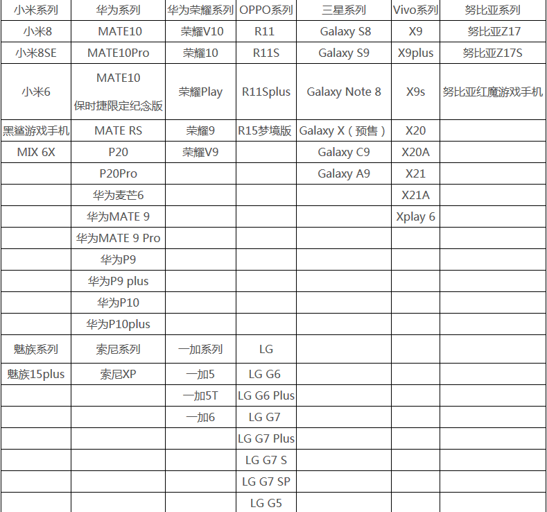小编整理了部分支持设备名单,以下机型基本上是可以玩的,没有在榜单上的建议开低配置进行游戏,只要达到官方配置(运行内存4G以上,安卓5.0版本以上)就可以,仅供大家: