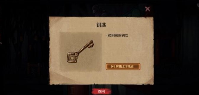 18.看手绘画,回到先前岸边,用洛阳铲挖地,得到钥匙。