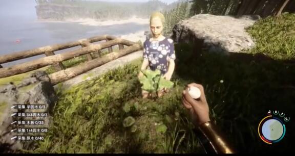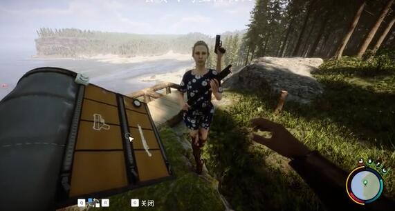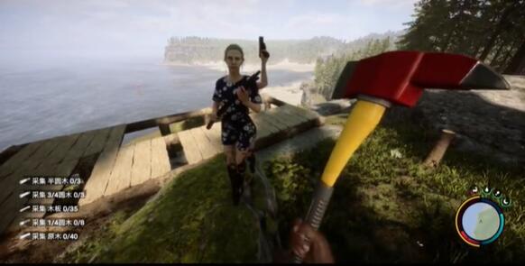 1、搭建一个木屋,她就会是时不时出现,靠近自己的时候,不用管她,收起武器就做自己的事情就行。