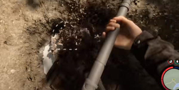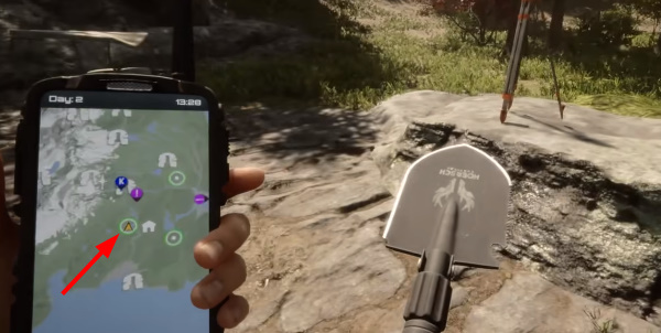 1、首先我们需要先获得【铁锹】,然后来到下图所在在的位置进行挖掘。