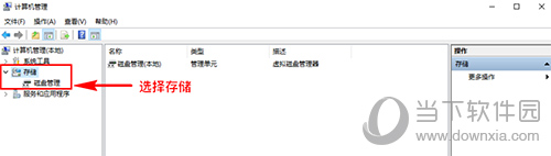 3、打开“计算机管理”弹窗,点击左侧的“存储”——“磁盘管理”选项;