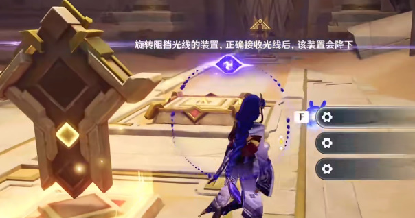 5、进入第二个解密区域后,我们先选装两次中央的机关,等待它回缩到地面。
