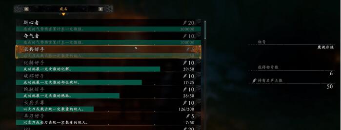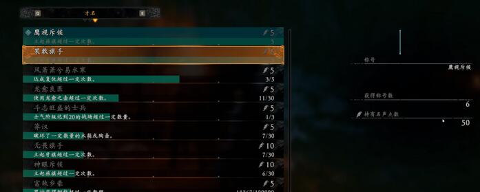 2、然后就能看到在“称号“界面中有很多称号任务可以完成,做完任务获得名声点数,消耗一定的名声点数就可以兑换情谊酒杯了。