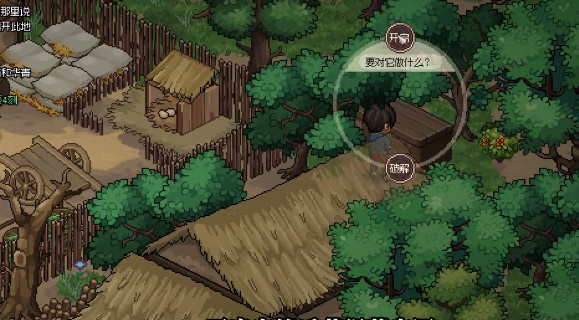 1、玩家来到新手村,先去卖肉摊贩的身后,他最边上的柴堆里有个铜钥匙,然后紧接着往北走有个柴堆,上面有一把斧子,我们把斧子拿走,点击战斗把柴堆打散,在最里面有一个宝箱,开启宝箱后获得藏宝图;
