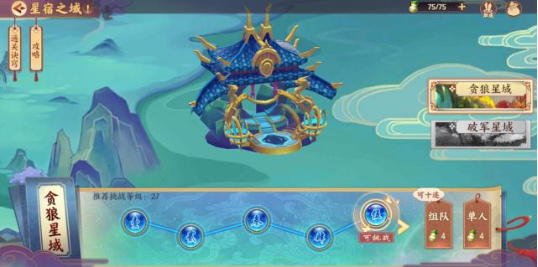 贪狼星域相比破军星域来说难度较低,可以先挑战贪狼星域,每层都有推荐挑战等级,实在挑战不过就先提升等级!在失败的时候也不要气馁,慢慢玩就可以了。