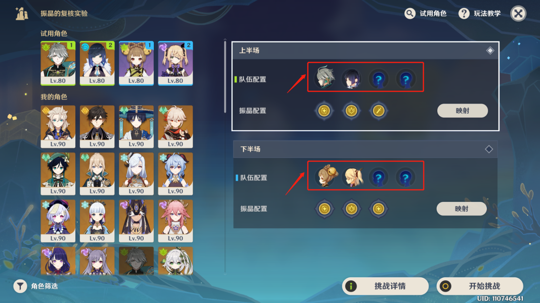 试用角色仅为参考,小伙伴们打的时候最好带齐带完整4个角色。