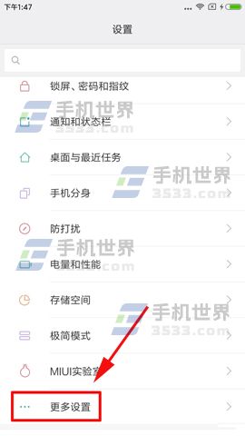 1)打开手机点击进入【设置】菜单,进入到菜单列表后滑动点击进入【更多设置】选项。(如下图)