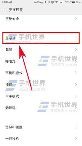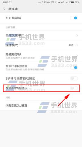 2)接着再点击【悬浮球】功能,最后将下面【在锁屏界面显示】开关打开即可。(如下图)