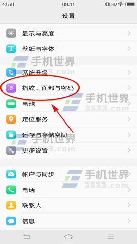 1)点击进入【设置】菜单,接着可以看到【指纹、面部与密码】菜单选项,点击进去。(如下图)