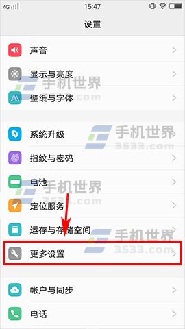 1)打开手机点击进入【设置】菜单,进入到菜单列表后滑动菜单点击【更多设置】选项。(如下图)