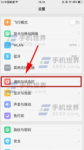 1)打开手机点击进入【设置】菜单,进入到设置菜单后再点击进入【通知与状态栏】选项。(如下图)