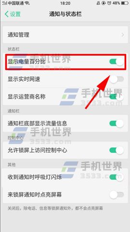 2)接着将【显示电量百分比】旁边的开关开启就可以显示数字电量了。(如下图)