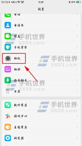 1)首先我们打开手机【设置】菜单,进入设置菜单后点击【相机】选项。(如下图)