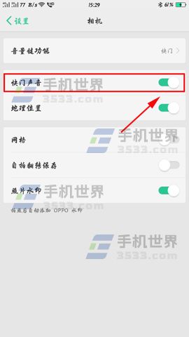 2)在相机设置界面里找到【快门声音】选项并且开启就可以了。(如下图)