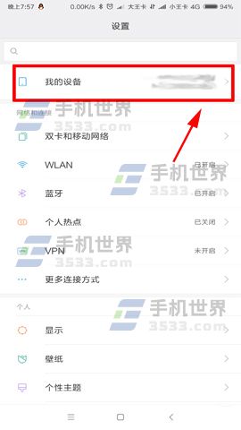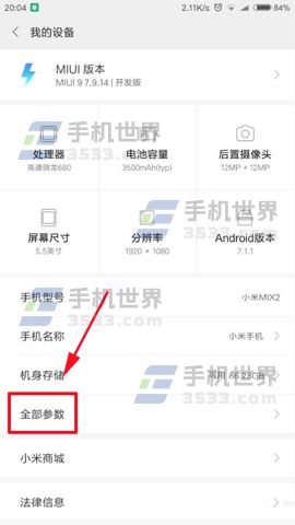 1)我们先打开设置菜单接着再点击进入【我的设备】,进入到界面后再点击【全部参数】菜单项。(如下图)