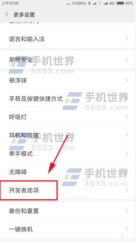 2)接着找到【MIUI版本】这一行,点击七到十次左右会提示【已进入开发者模式】,然后进入设置菜单里的【更多设置】界面就能找到【开发者选项】了。(如下图)