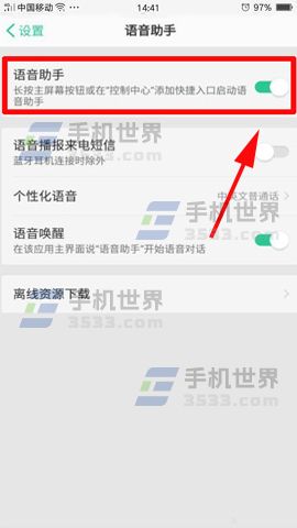 2)进去后点击【语音助手】旁边的按钮开关将其开启即可。(如下图)