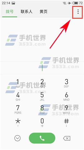 1)先打开【电话】应用,进入电话应用后点击右上角三个点状的菜单图标。(如下图)