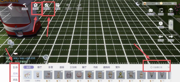 2、大家可以通关在家园里面找到建造,在建造的左下一列选择功能点击【娱乐】就可以看到娃娃机了。