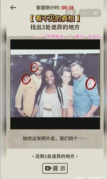 看不见的真相是一款悬疑烧脑小游戏,主要考验玩家的眼力和推理能力,我们需要根据提示和场景找出不合理的地方,发现真相,对于最后一张合影这一关不知道怎么过的小伙伴,赶紧来看看吧!