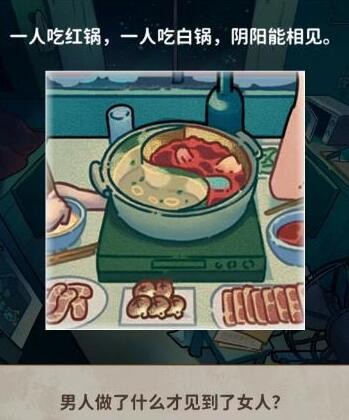 5、男人做了什么才见到了女人?——点击桌上的鸳鸯锅(这关绝对是四川人想出来的)
