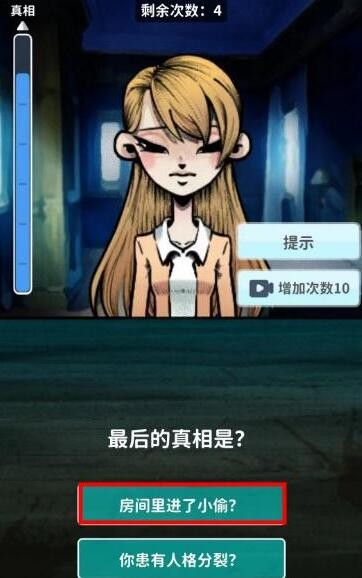7、最后的真相是什么?选择房间里进入了小偷,然后点击直接过关。