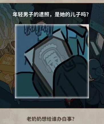 3、老奶奶要给谁办白事?点击这个遗照可以看到是一个戴着耳机的年轻男人。