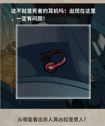 4、从哪里可以看出老板就是杀人凶手?点击这个棺材上的字,可以看到这是有着死者头上的那个耳机,出现在这里说明老板有问题。