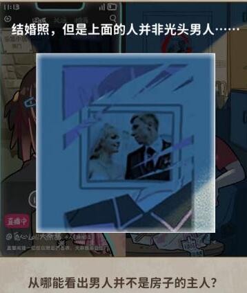 3、从哪里可以看出男人不是这家主人?——点击门上的海报会出现婚纱照里的惹不是光头男人。