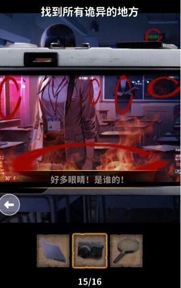3、还有最后几处诡异的地方用放大镜可以看到在讲台的血手印和在桌子里的眼睛。