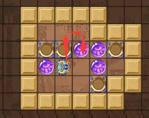 3、然后绕到左上的珠子的上方向下顶一格珠子,之后去它右侧将这个珠子顶到最左边。