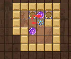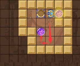 1、向上走到右侧的珠子上方向下顶一格珠子。