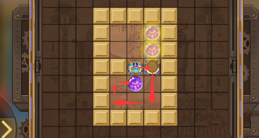 3、然后向下顶珠子顶一格,然后向右走绕到珠子的左侧。