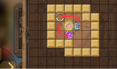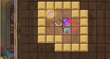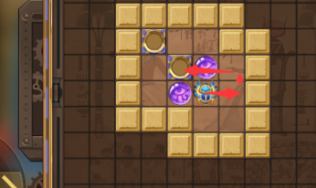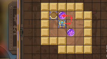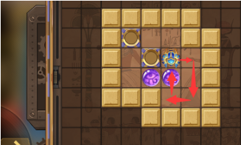4、我们再向上走然后向左走,并向下绕到珠子的左边,将其往右推动一格。