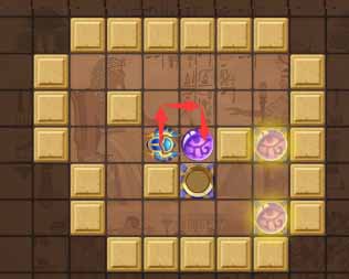 7、然后将左侧的珠子向下顶一格,右侧的珠子顶到最右侧的凹槽中。
