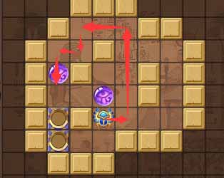 1、走到右侧的珠子上方向下顶一格。