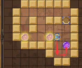 4、然后绕到下图中的最左侧的珠子上方向下顶一格。