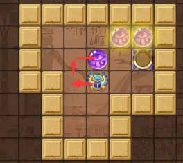 2、然后走到左侧珠子的上方向下顶一格吗,然后向右顶一格。