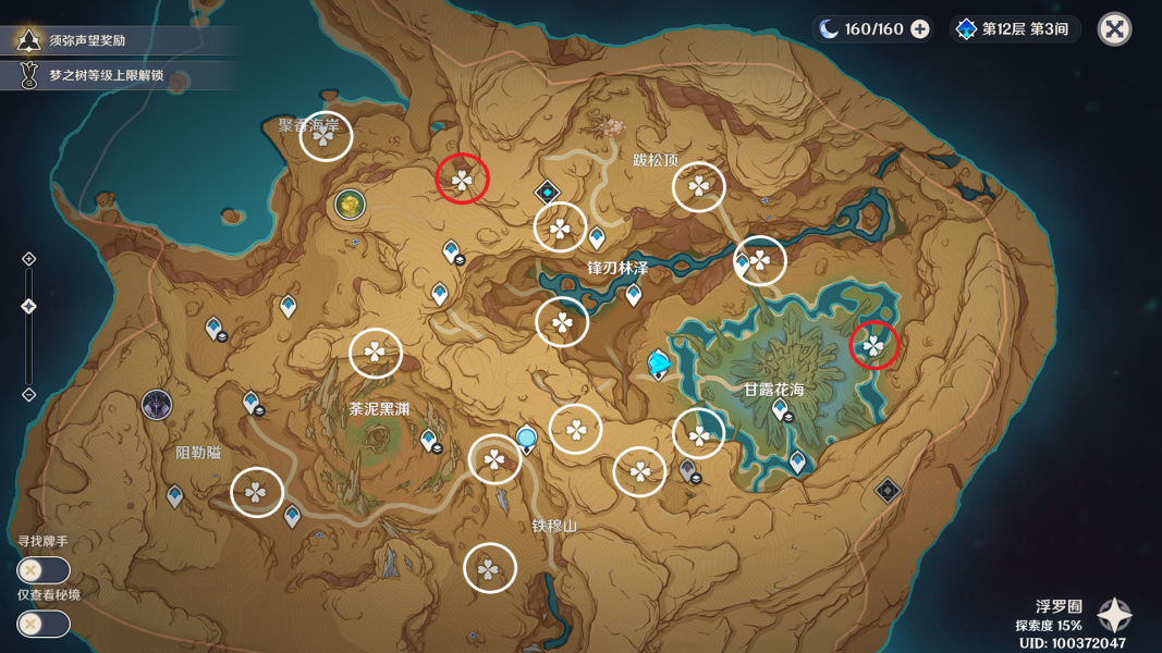 总共有14个点位,其中红圈处各有两块晶石,别漏了