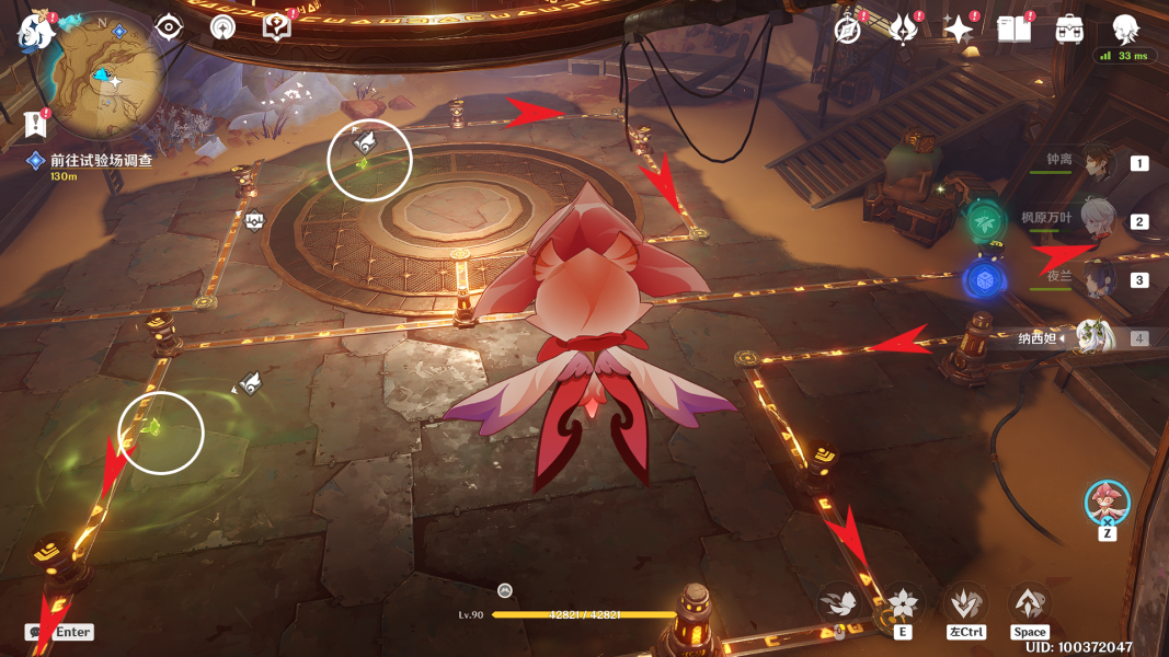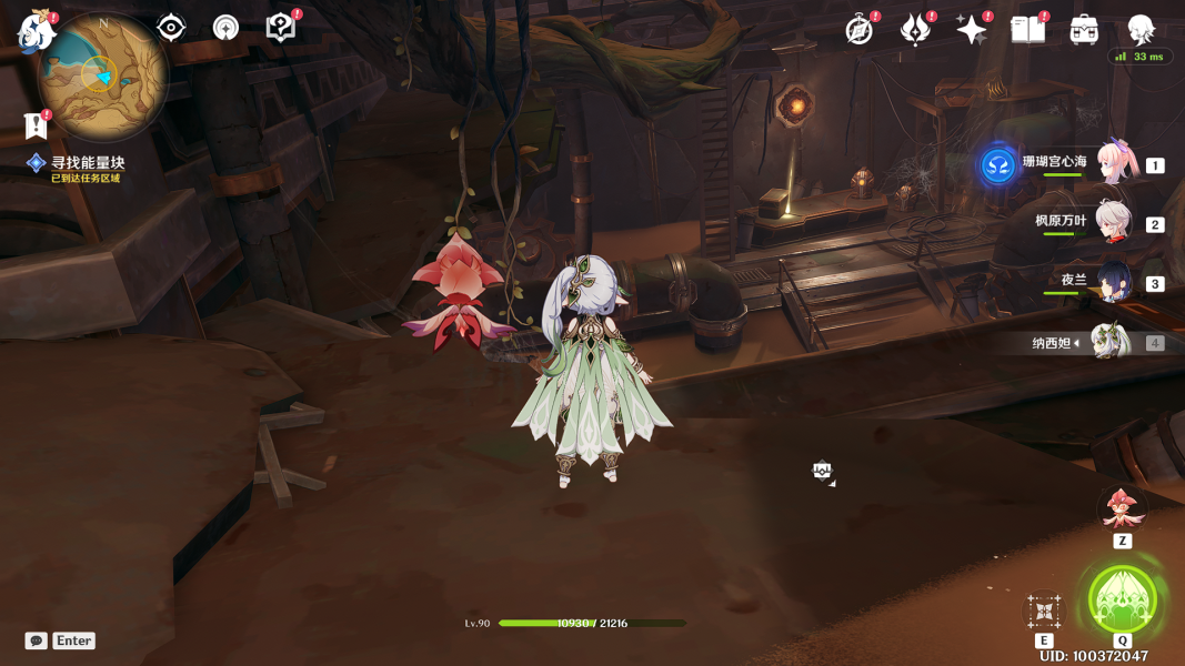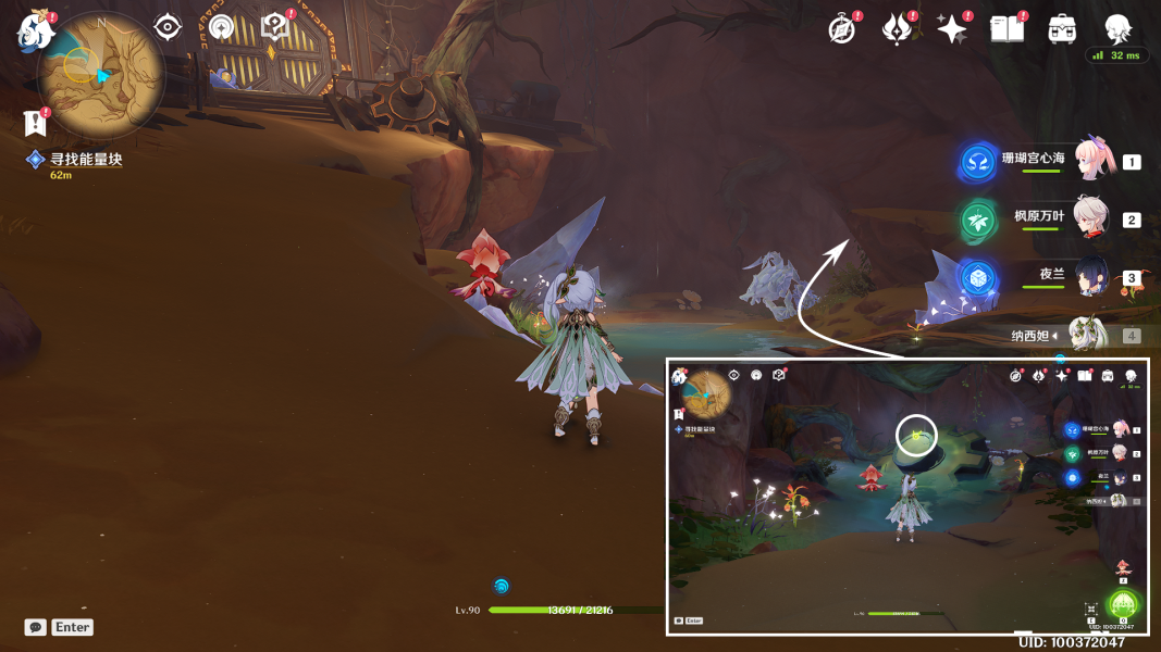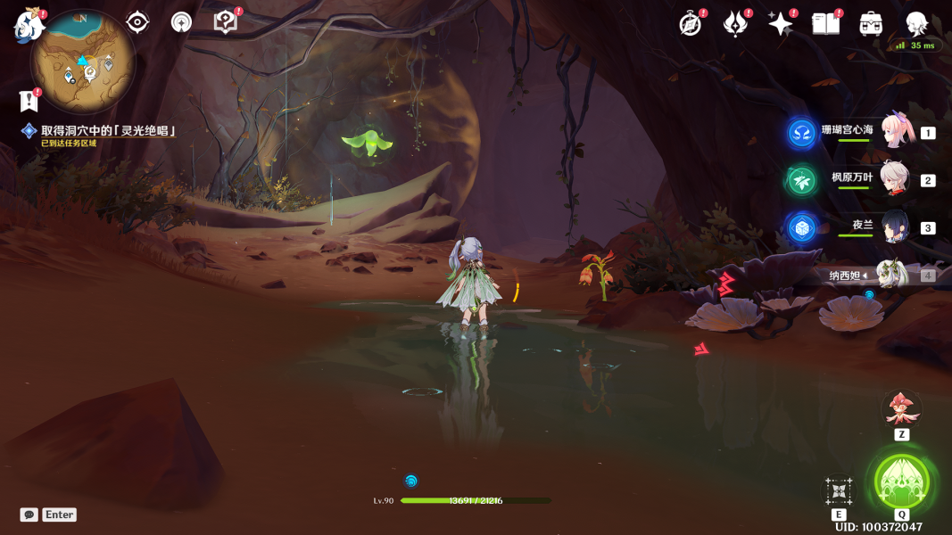 (1)来到洞窟的底层(就是之前水鼓的洞窟),操控「花灵」来到屏障前长E
