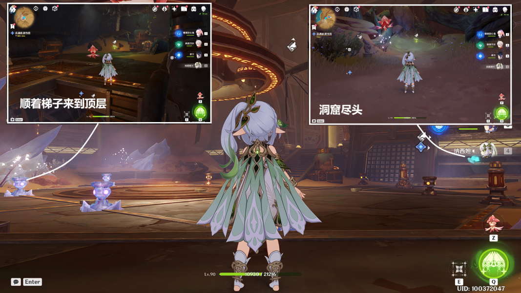 (8)跟随房间两侧的仙灵,去拾取灵芯(左侧的顺着梯子来到顶层;右侧的在洞窟的尽头)