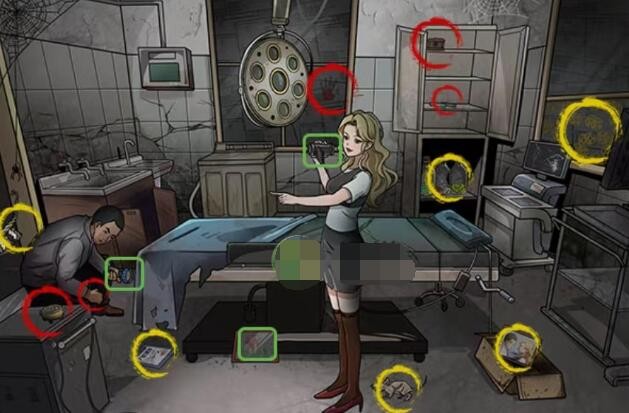 3、红圈是主要场景中的道具,其中骨灰盒和血清药物需要打开摄像画面中的柜子才能够解锁;