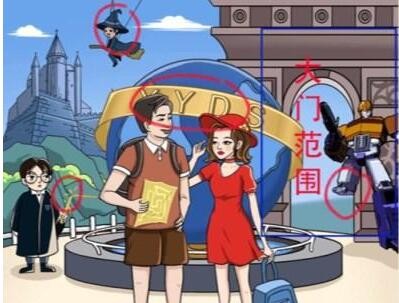 1、就挺秃然的帮旅游特种兵缩短逛景点时间使用放大镜可以看到吊威亚、yyds、断的魔法杖、断腿。