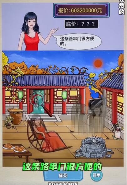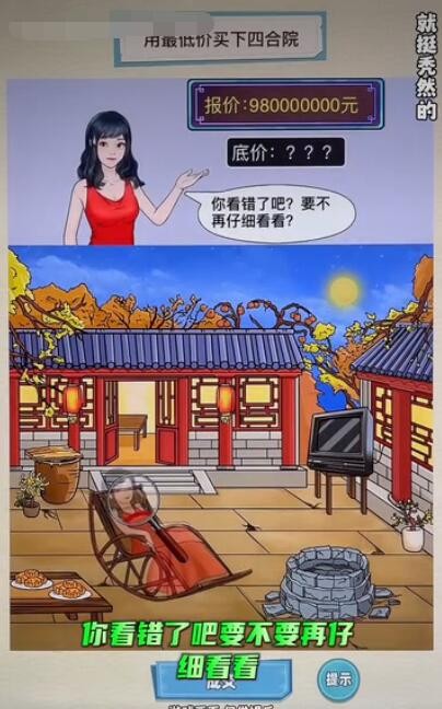 就挺秃然的是一款益智闯关游戏,有很多搞笑的剧情,玩家可以发散自己的思维进行闯关,获得更多的灵感,很多小伙伴不知道四合院异事用最低价买下四合院这一关怎么过,接下来就跟游戏爱好者小编一起来看看吧,有需要的小伙伴不要错过!