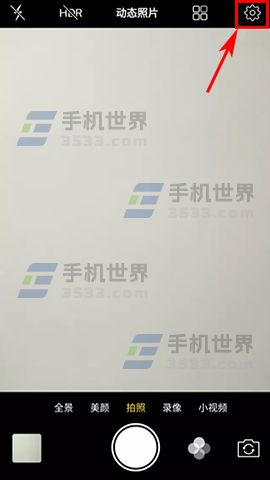 1)打开手机的【相机】应用,进入相机界面后点击右上角齿轮状的设置图标。(如下图)
