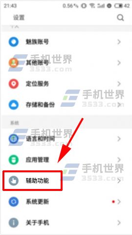 1)我们先打开手机点击进入【设置】菜单,来到菜单列表后滑动屏幕找到【辅助功能】点击进去。(如下图)