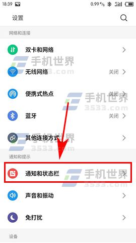 1)首先,我们先打开手机点击进入【设置】菜单,随后再滑动列表找到【通知和状态栏】选项点击进去。(如下图)