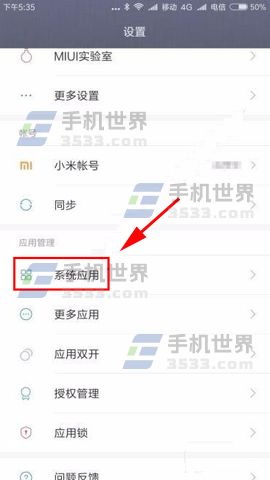 1)先打开手机点击进入【设置】菜单,进入到菜单列表后滑动找到【系统应用】点击进去。(如下图)
