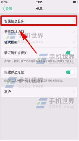 2)来到信息设置界面后再点击【智能信息服务】,最后再将【信息卡片化显示】功能开启即可。(如下图)